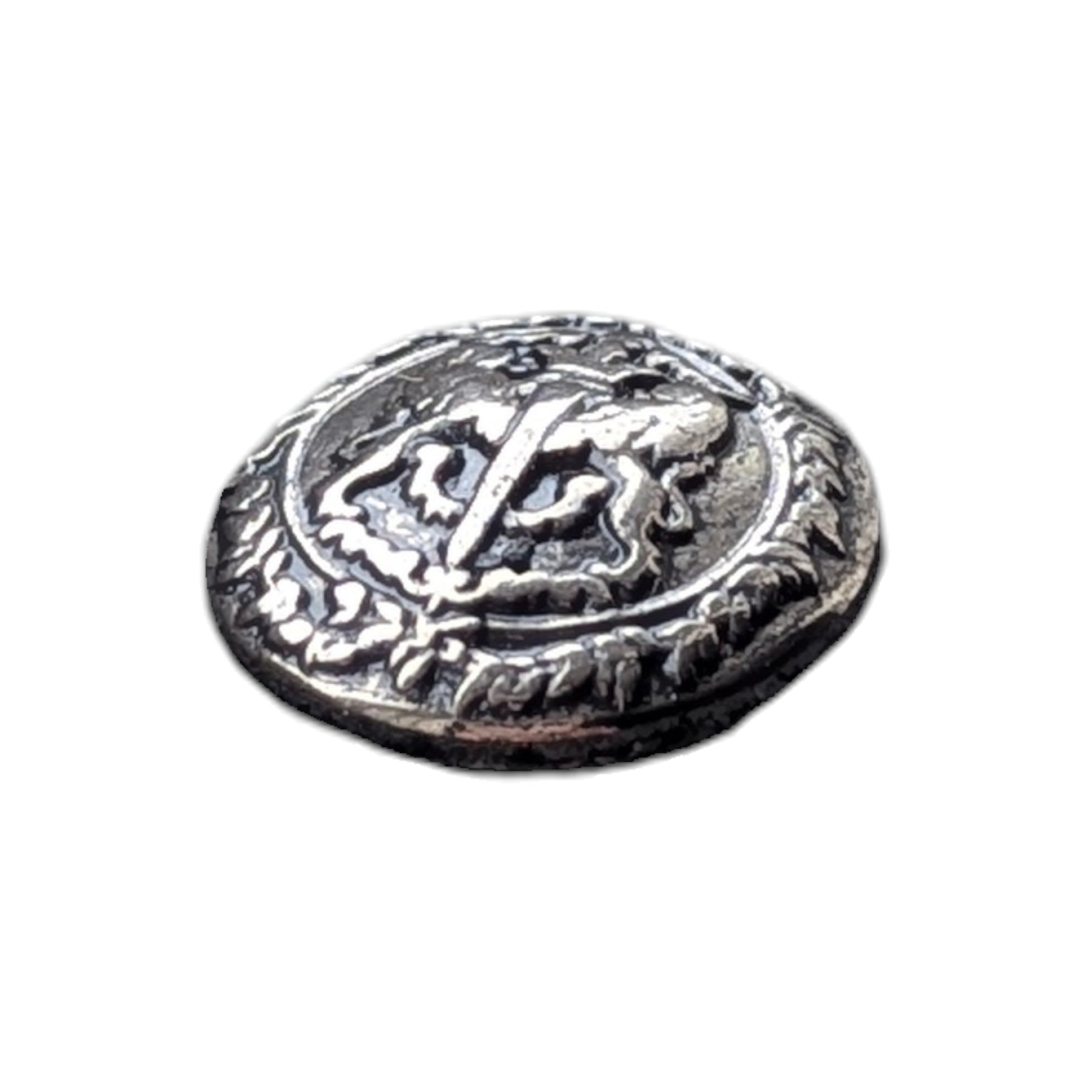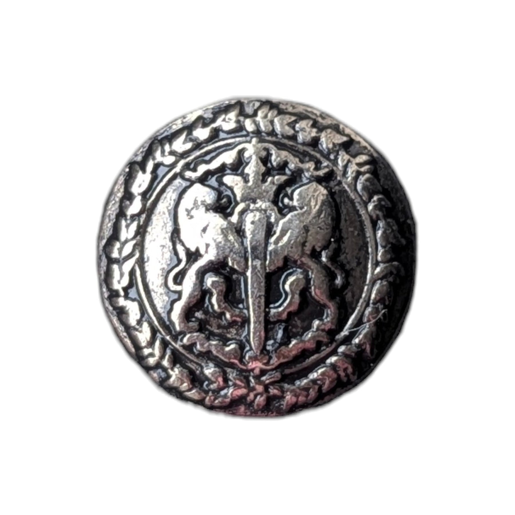 Schmuckknopf aus Metall, Wappenverzierung.