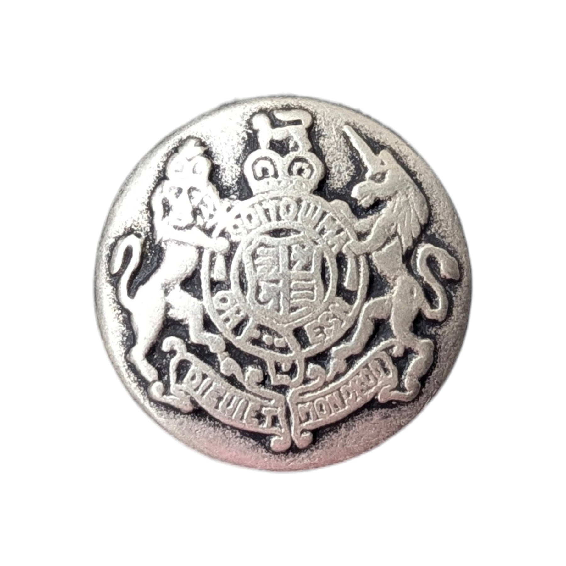 Schmuckknopf aus Metall, Wappenverzierung.